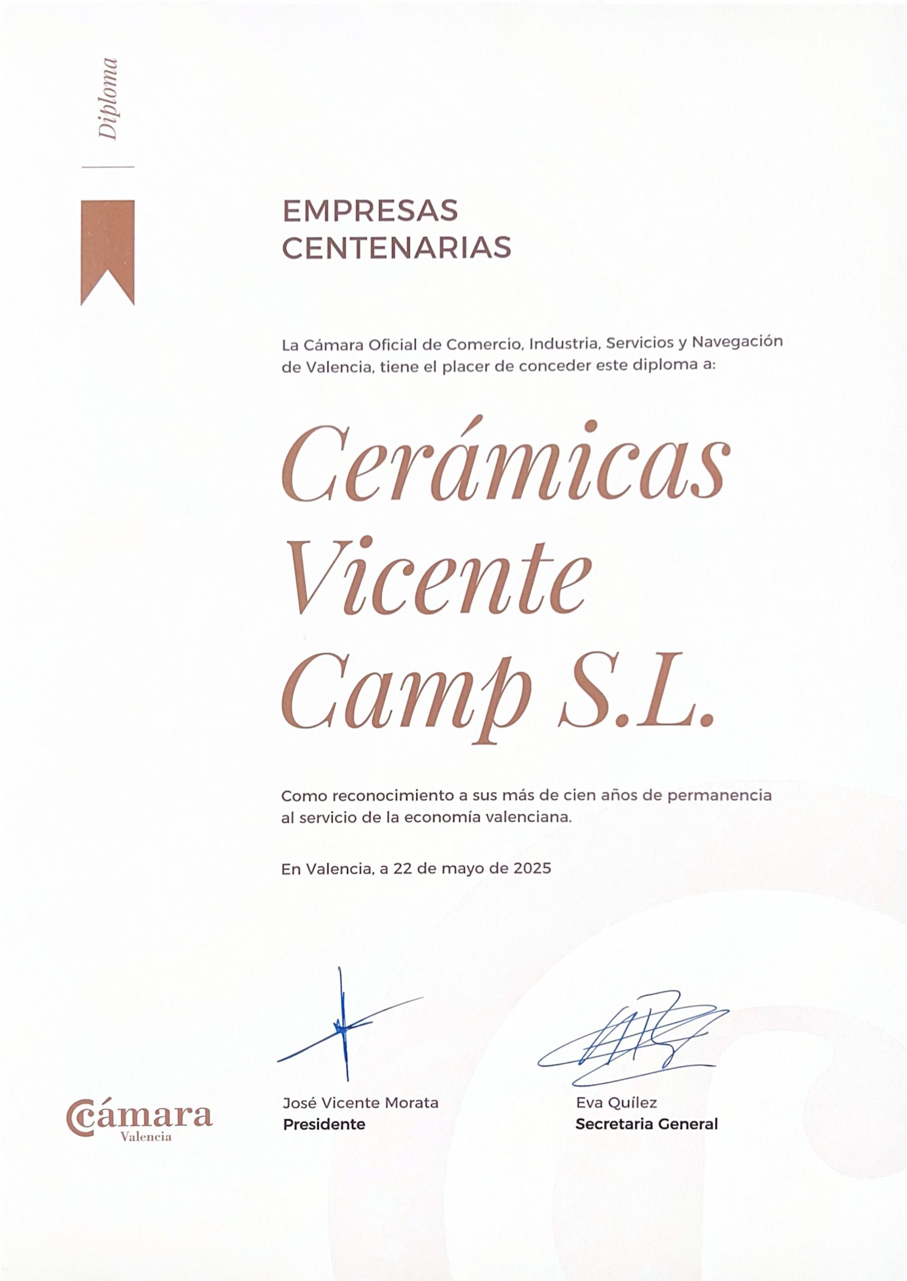 Empresa de más de 100 años reconocida por la Cámara de Comercio, Industria, Servicios y Navegación de Valencia.